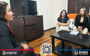 La Directora del Departamento de Interacción Social y Extensión Universitaria Lic. Madai Moscoso Serrudo y su par Lic. Lizeth Cruz Lenis, Directora del Servicio Departamental de Gestión Social se reunieron para trabajar en beneficio de ambas instituciones.