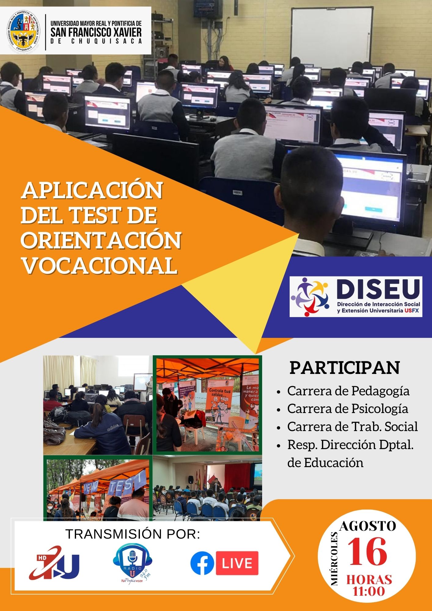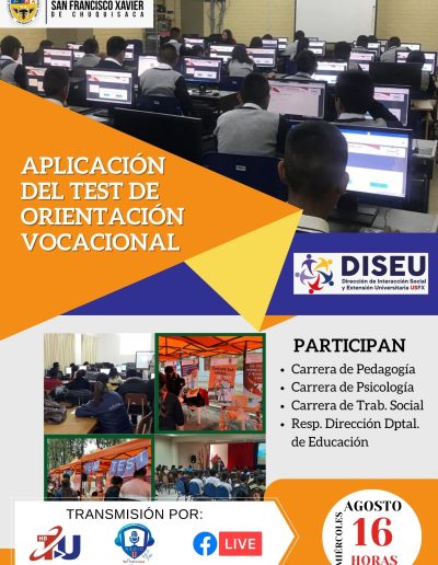 Las Jornadas de Difusión de la Oferta Académica de la Universidad San Francisco Xavier te ofrecen una experiencia enriquecedora para definir tu camino profesional. Desde orientación vocacional hasta presentaciones informativas y recorridos prácticos, esta es una oportunidad invaluable para descubrir tu vocación y construir un futuro exitoso.